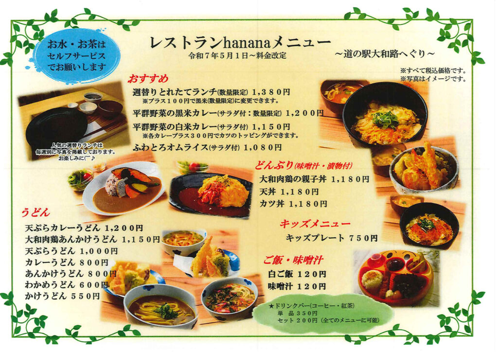 ※当日の作物の入荷状況によりメニューが一部変更となる場合もございます。あしからずご了承いただきますよう お願いいたします。