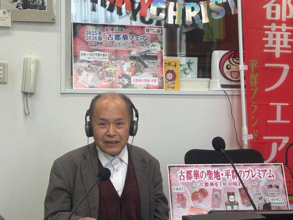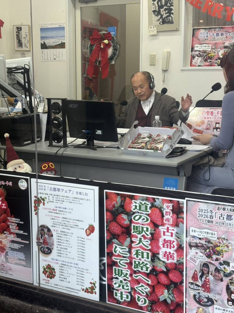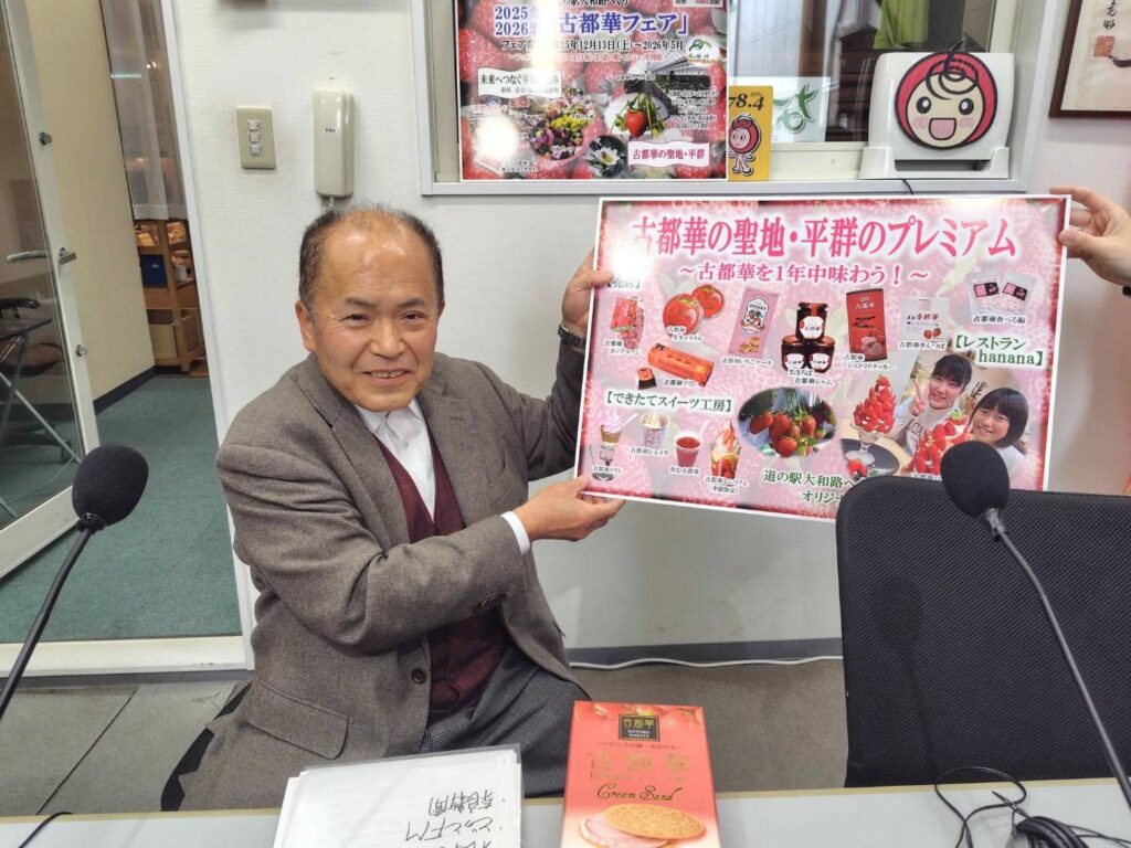 パーソナリティに中尾 晃久氏、アナウンサーの森本 万里奈氏に、平群の古都華を熱くアピールしました!