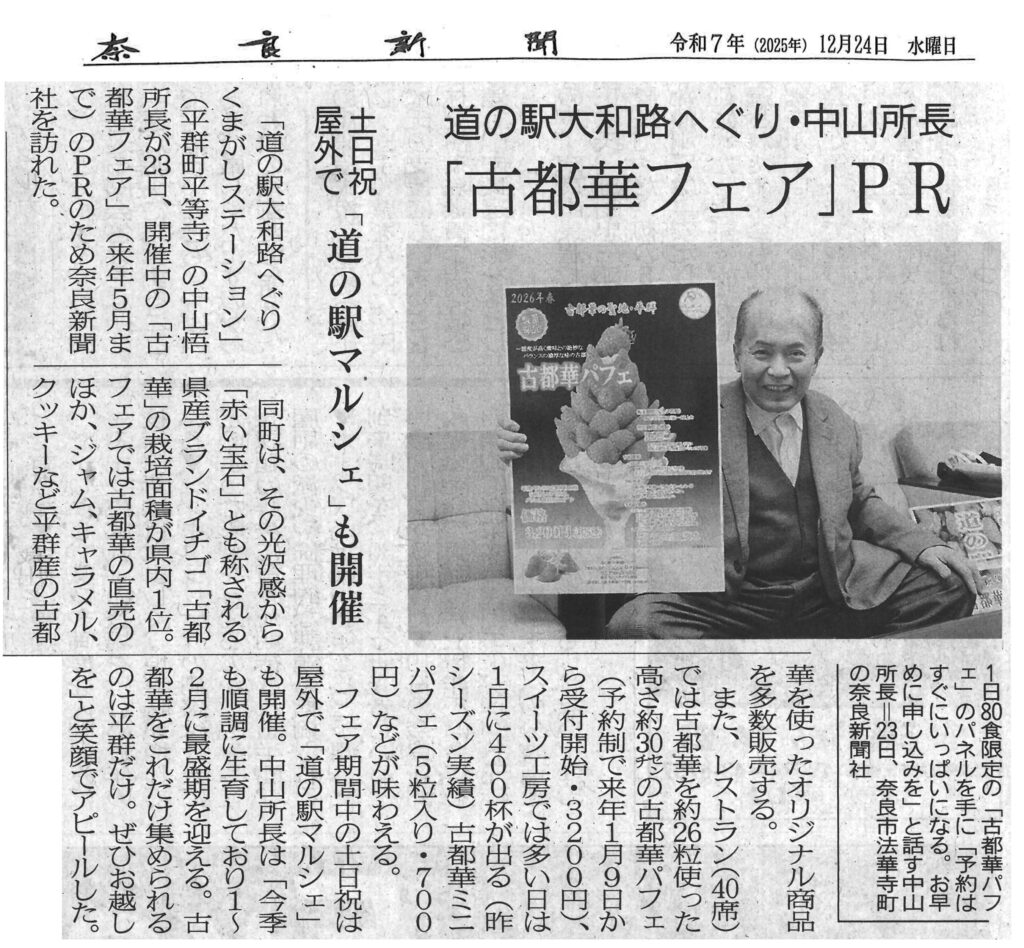 12月24日付 奈良新聞に掲載されました