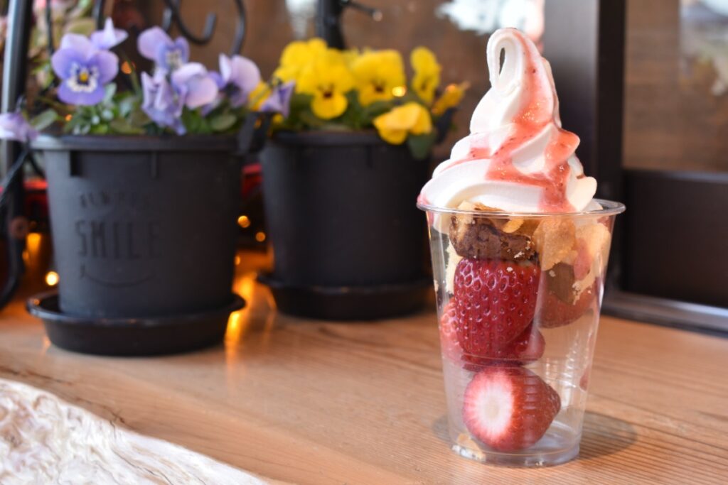 『できたてスイーツ工房』で「古都華ミニパフェ」を販売しています。