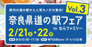 ならファミリーにおいて、第3回「奈良県道の駅フェア」実施いたします。 奈良県道の駅 合計10駅による特産品の販売や、道の駅の素敵な賞品が当たる抽選会、各市町村のキャラクター登場など、楽しいことが盛り沢山なフェアを実施いた […]